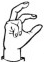 На ћирилици написано ПАУН БРЗАКОВИЋ састоји се из 13 слова [?]. Исписано ћириличном једноручном азбуком за глувонеме: